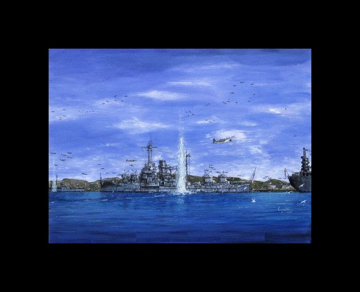 USS Arkansas BB33 providing fire support during the landings on Okinawa.