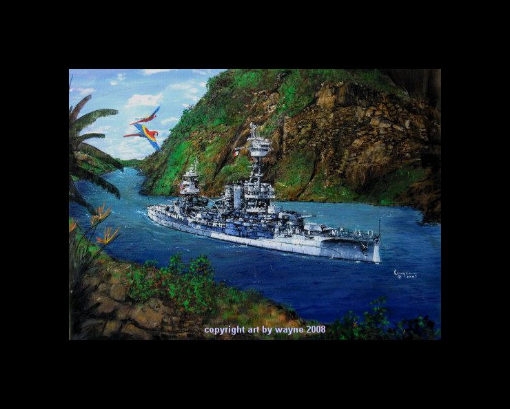 USS New York BB35 at Gillard's Cut in the Panama Canal Nov 1944 on its way to the Pacifc for the final push against Japan