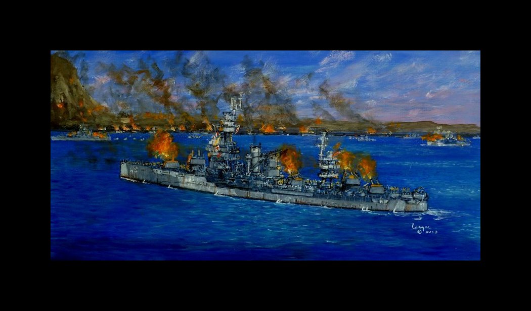 USS New York BB35 on the bomb line off Iwo Jima in April 1945.
