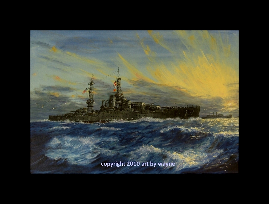 USS Nevada BB36 escorting the transport USS George Washington with Pres. Wilson aboard to Brest France for the Versailles Peace conference in 1919