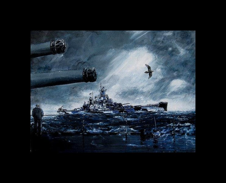 USS Indiana BB58 wearing Measure 32/18d camouflage weathering a squall in 1944
