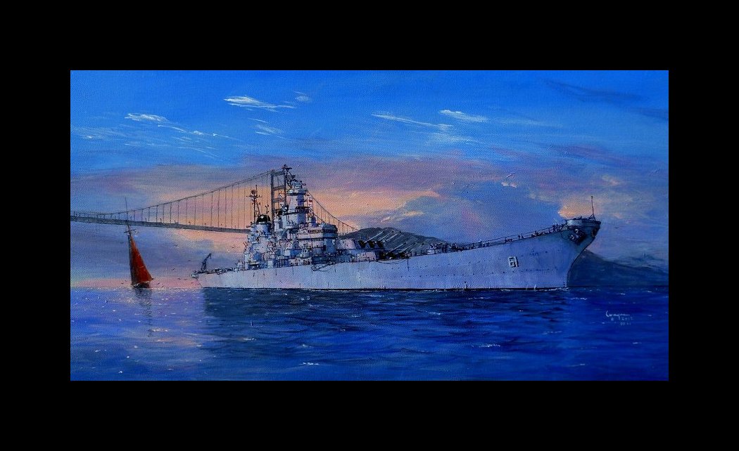 USS Iowa BB61 in San Francisco Bay in 1952 after returning from the Korean Theater