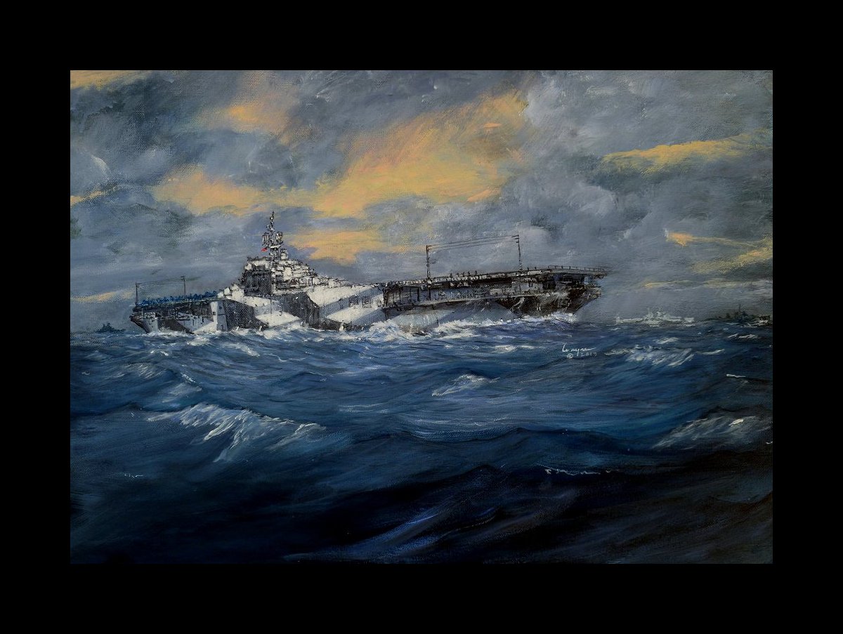 USS Hancock CV 19 battling heavy seas in Typhoon Viper in 1944