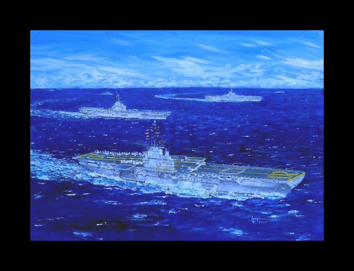 USS Bennigton CVA 20 operaing with the USS Oriskany CVA 34 and the USS Boxer CVS 21 1956