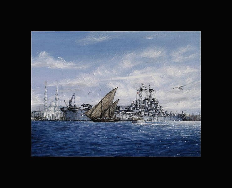 Light Cruiser USS Huntington CL107 at Port Said Egypt the northern entrance to the Suez Canal in 1946