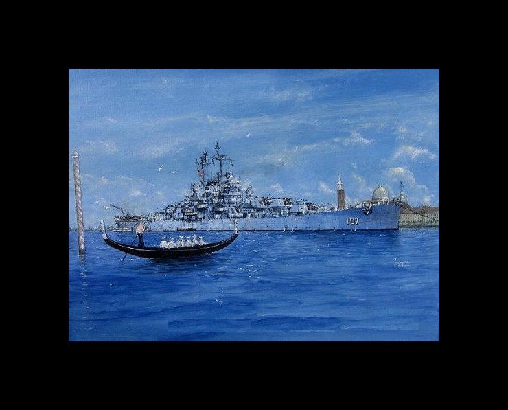 Light Cruiser USS Huntington CL107 in the lnner Lagoon at Venice Italy in 1946