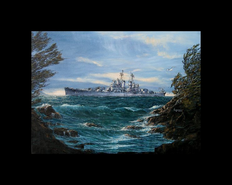 Heavy Cruiser USS Los Angeles CA135 off Angels Gate at the entrance to Los Angeles Harbor
