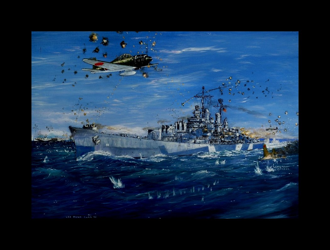 Anti-Aircraft Cruiser USS Reno CLAA96 during the raids on Formosa in 1945.