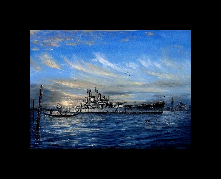 Heavy Cruiser USS Salem CA139 moored in Venice in 1957