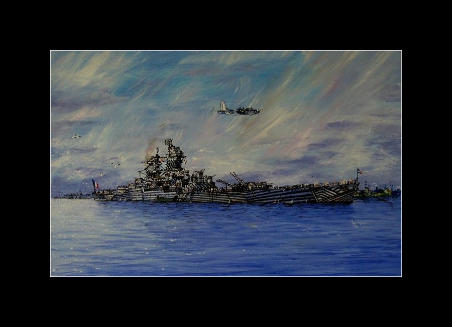 Battleship Jean Bart at anchor in Toulon in the summer of 1955.
