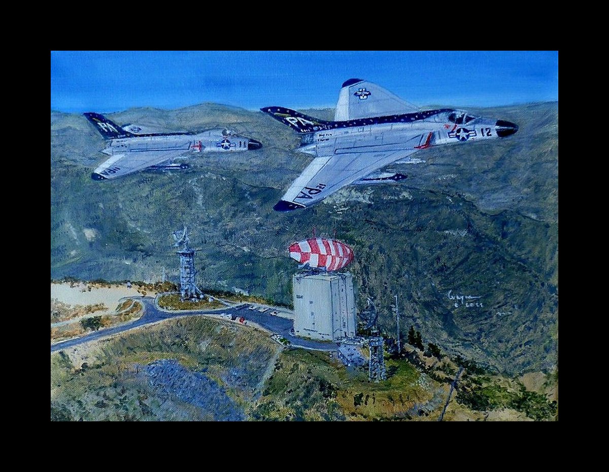 Two US Navy Douglas F4D Skyrays of VFAW 3 thunder over the USAF AN/FPS 24 radar site near San Jose CA in 1960